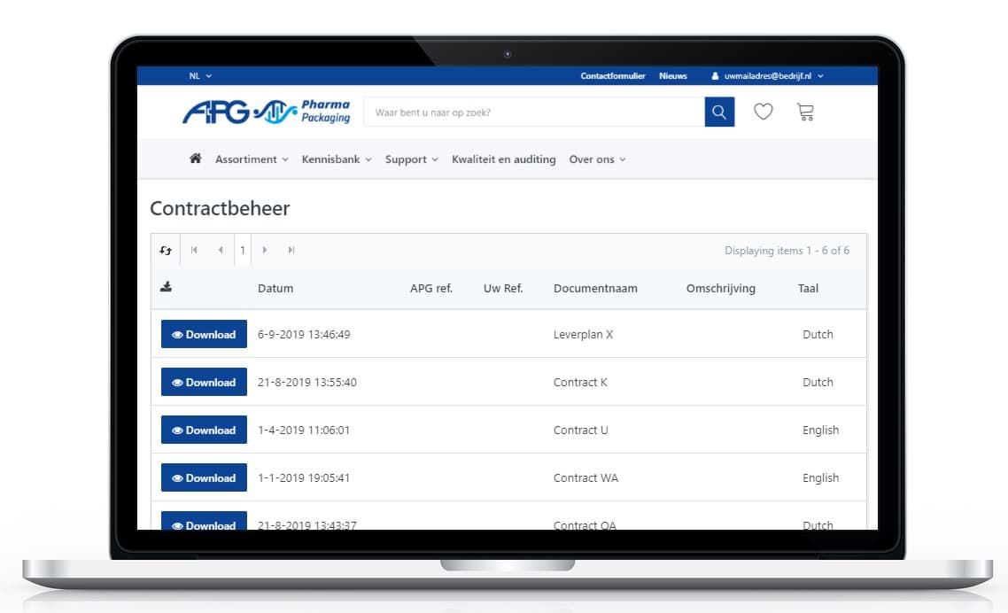Bij het aanvragen van prijzen voor specifieke artikelen, aantallen en plaats van levering ontvangt u van APG Europe een gedetailleerde offerte. Alle offertes die aan u en uw organisatie zijn uitgebracht vindt u terug onder 'Offertes' binnen de module Transacties.